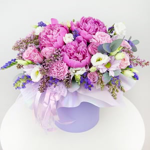 All sorts of flower arrangements: classic bouquets, arrangements in hats and boxes, table centerpieces;
