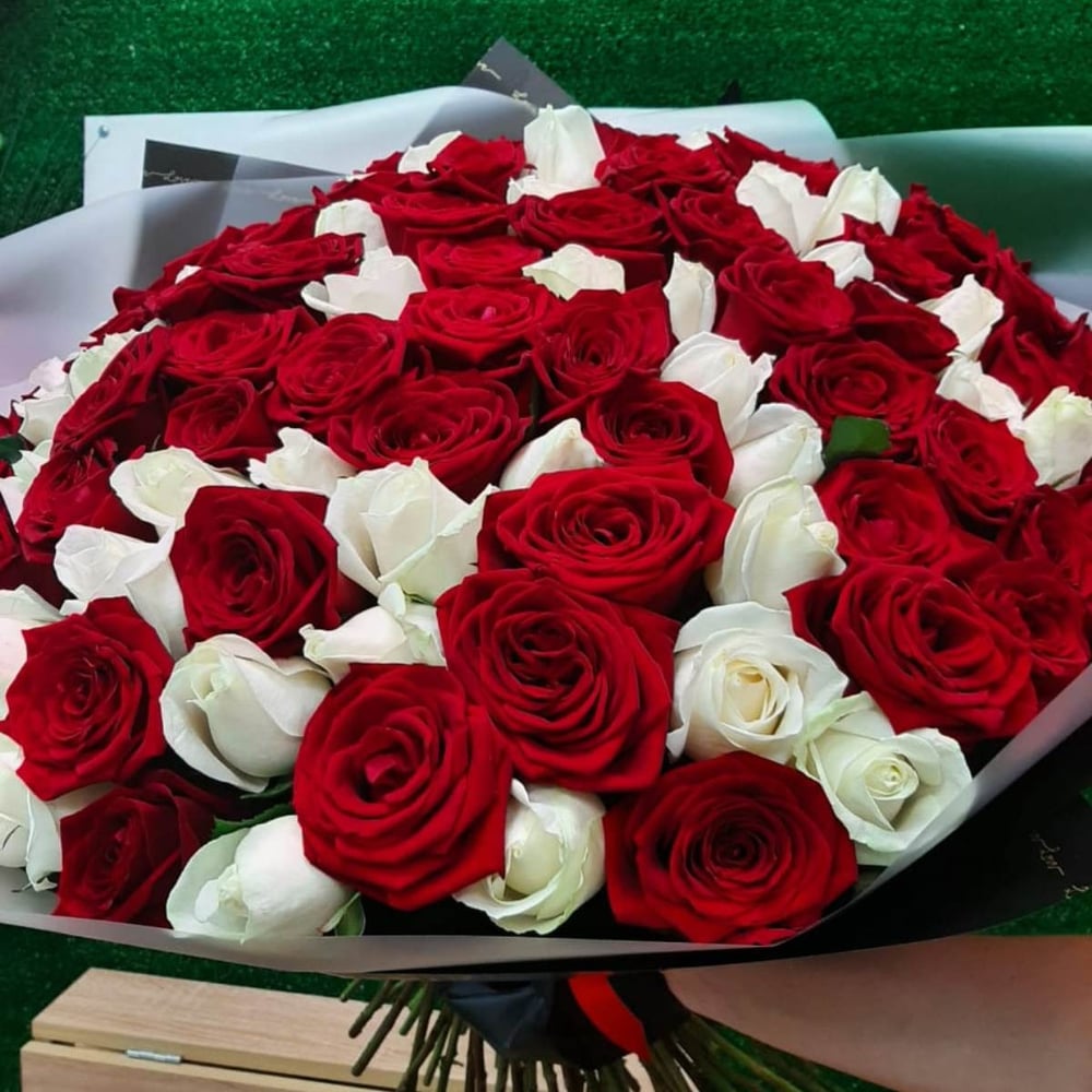 Bouquet '101 white and red roses in matte film'