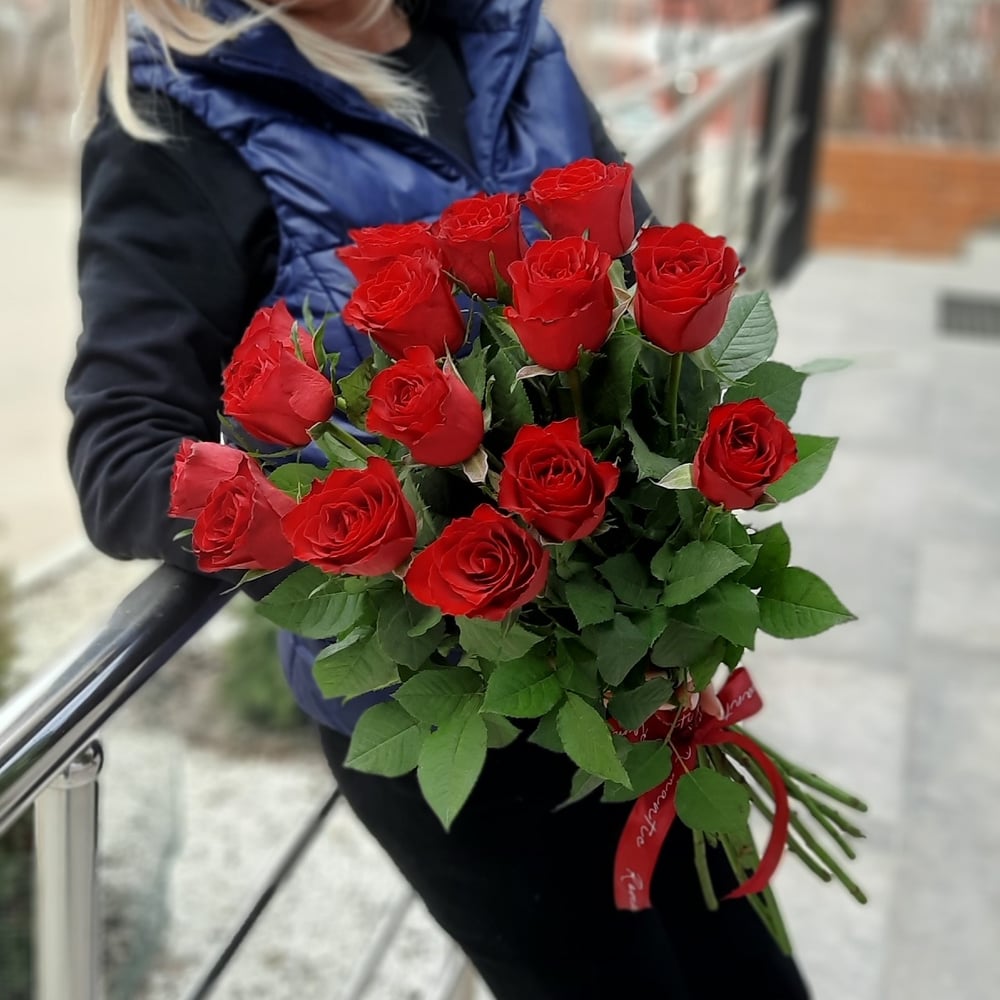 Bouquet '15 red roses with ribbon'