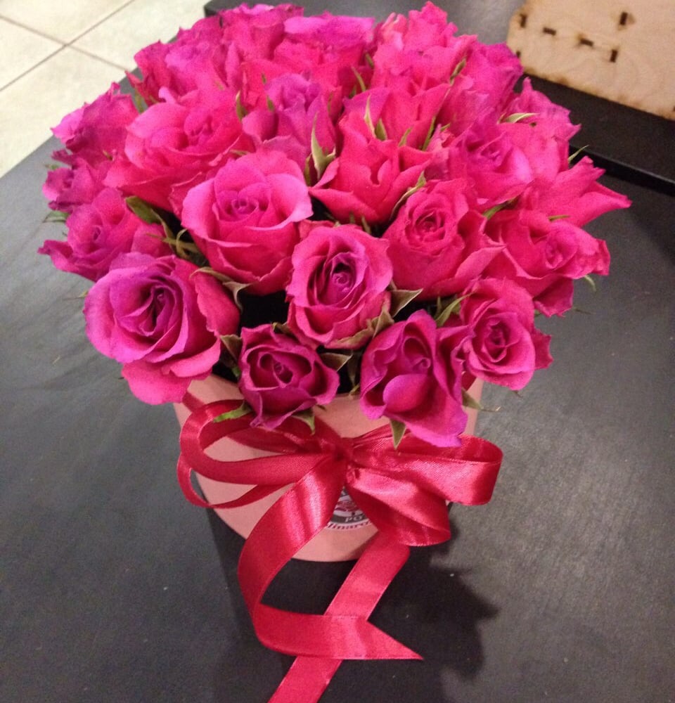 Hat box with flowers '25 roses in a hatbox'