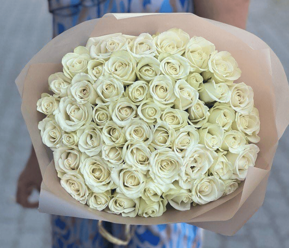 51 white roses bouquet