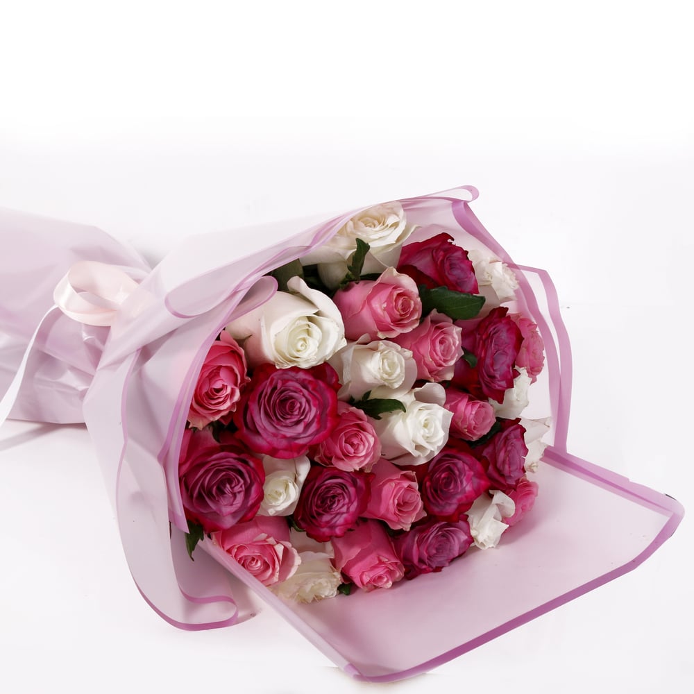 Appreciate this juicy, bright composition of colorful roses and please your recipient.