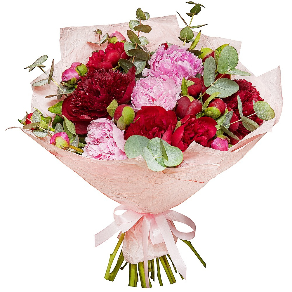 Beautiful mix of pink and burgundy peonies will make a luxurious gift for any occasion!