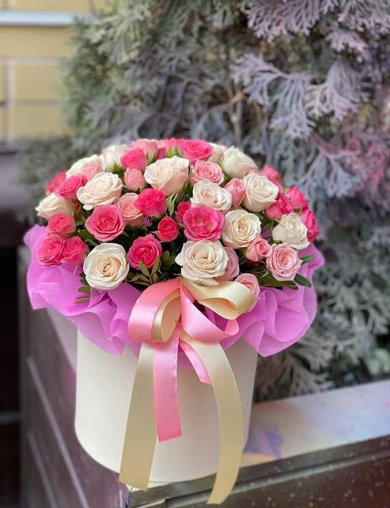 Hat box with flowers 'A touch of tenderness'