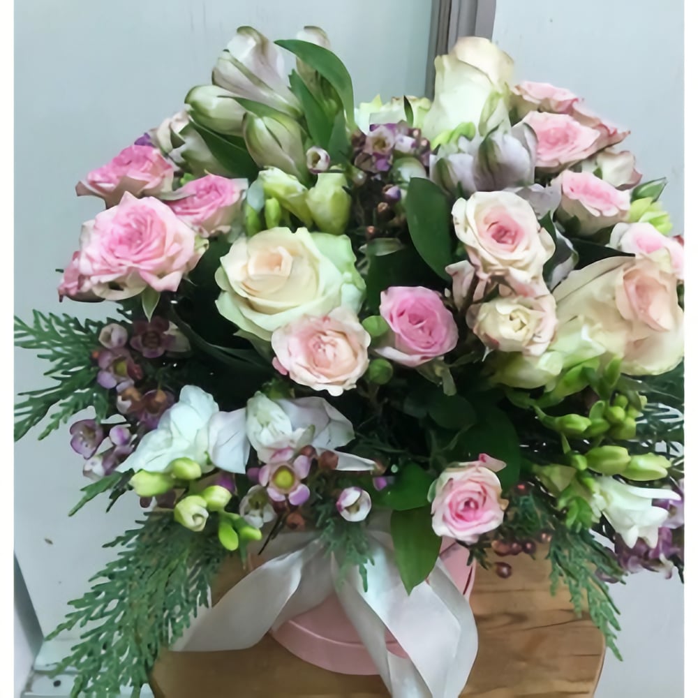 Hat box with flowers 'Aphrodite'
