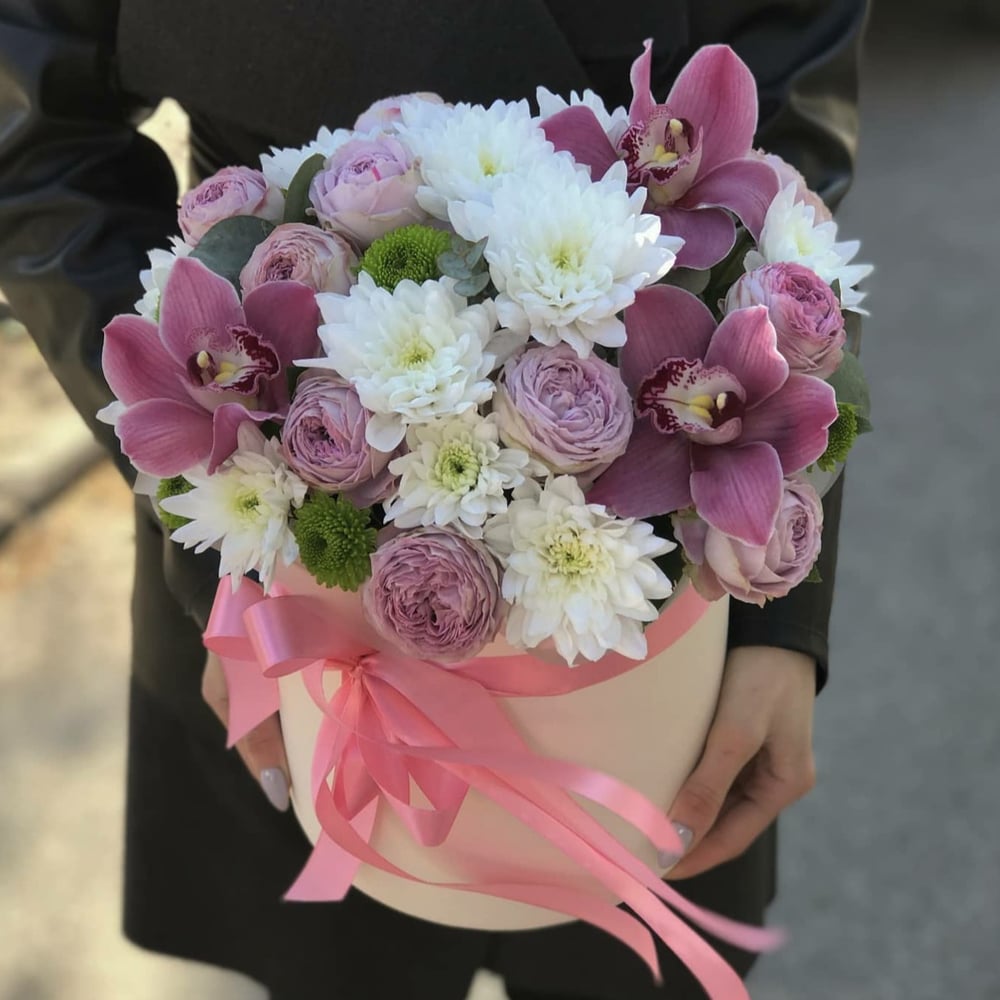 Hat box with flowers 'Arranged box 2'