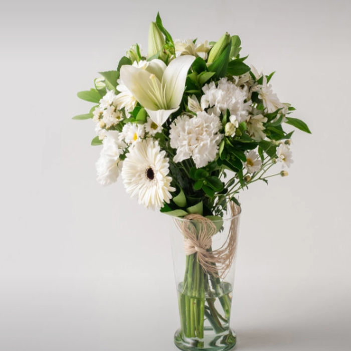 The combination of lilies and wildflowers creates a uniquely beautiful arrangement. When complemented with ruscus, raffia, and placed in a vase, it becomes a delightful surprise for someone you love.