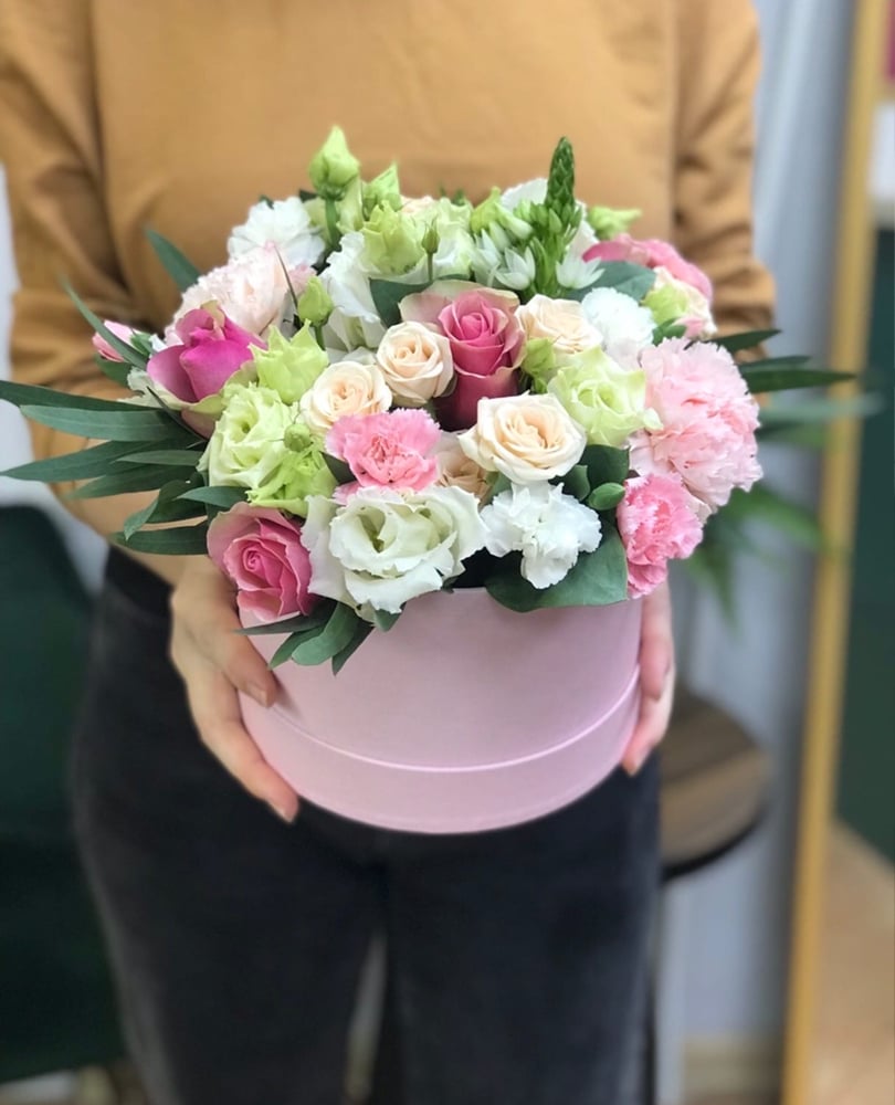 Hat box with flowers 'Attraction'