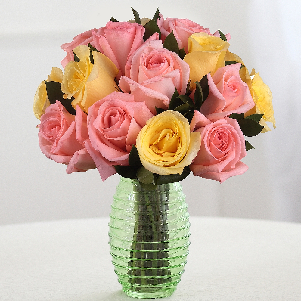 A bouquet of 15 pink and yellow roses is an exquisite and delicate gift that will give the recipient unforgettable emotions. This bouquet will be a wonderful choice for any occasion: a birthday, anniversary, corporate event, or simply a desire to please a loved one. The combination of pink and yellow roses symbolizes harmony, joy, and admiration. They create an atmosphere of coziness and give a good mood. A bouquet of 15 pink and yellow roses will be a beautiful decoration for any interior and fill it with a subtle fragrance. It will bring joy and happiness, as well as leave pleasant memories for a long time. Order a bouquet of 15 pink and yellow roses right now and give unforgettable emotions with delivery right to the door. Your choice is a guarantee of quality and freshness, as we care for each bouquet as if it were our own gift.