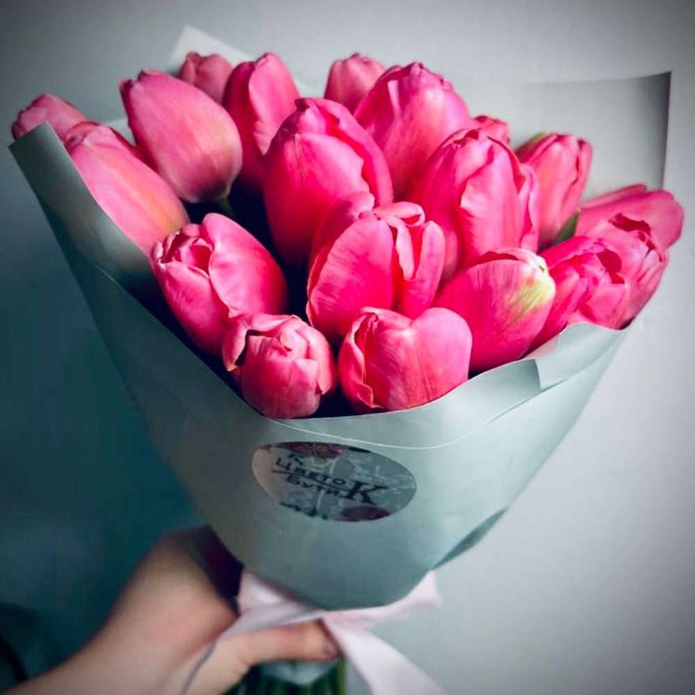 Bouquet of 19 pink tulips