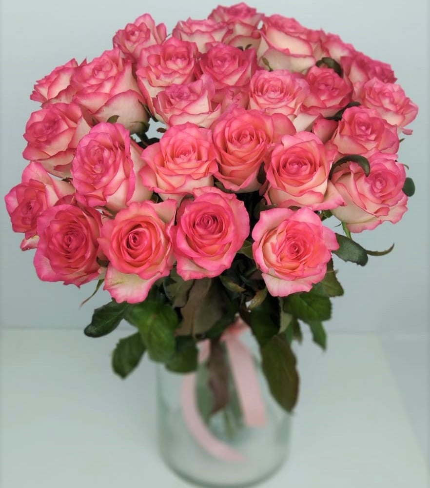 Bouquet of 25 pink roses 60 cm