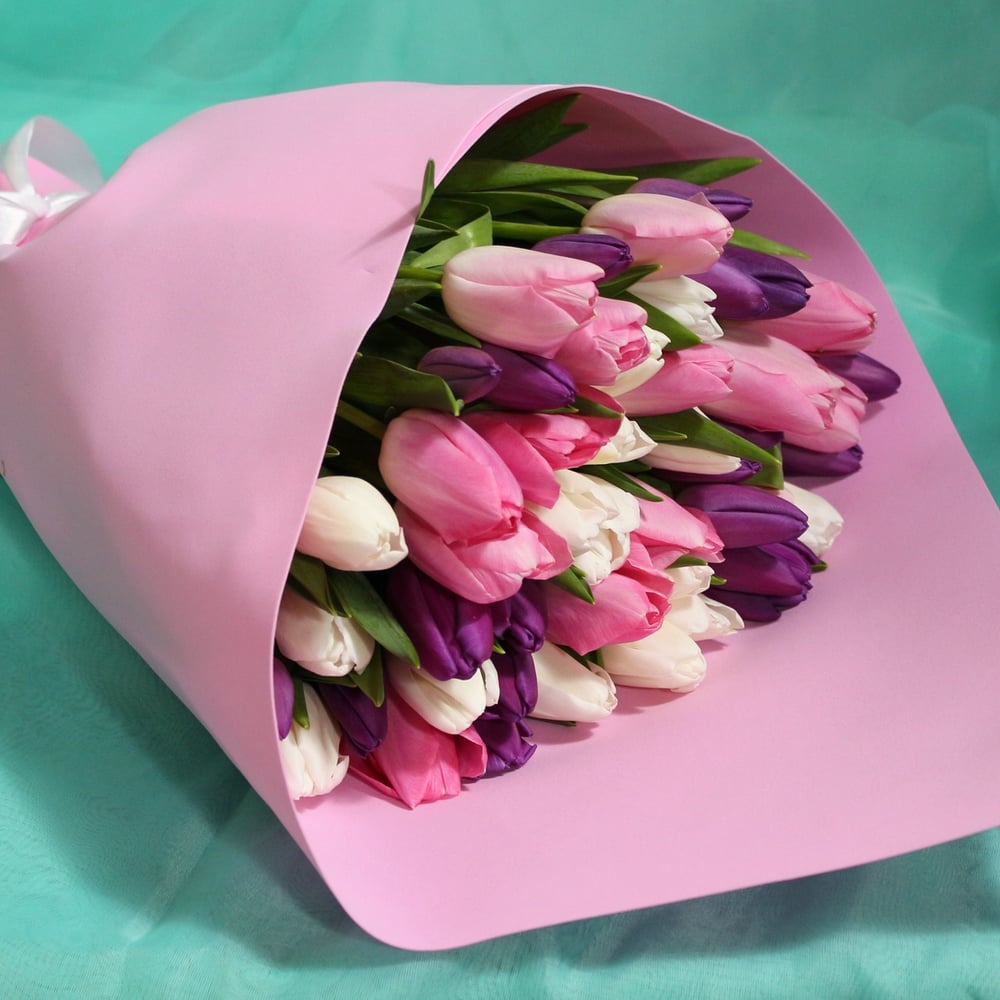 Bouquet of 35 tulips in delicate colors