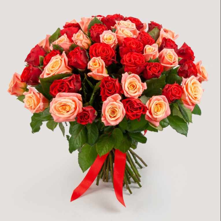 Bouquet of 51 roses "Blush of dawn"