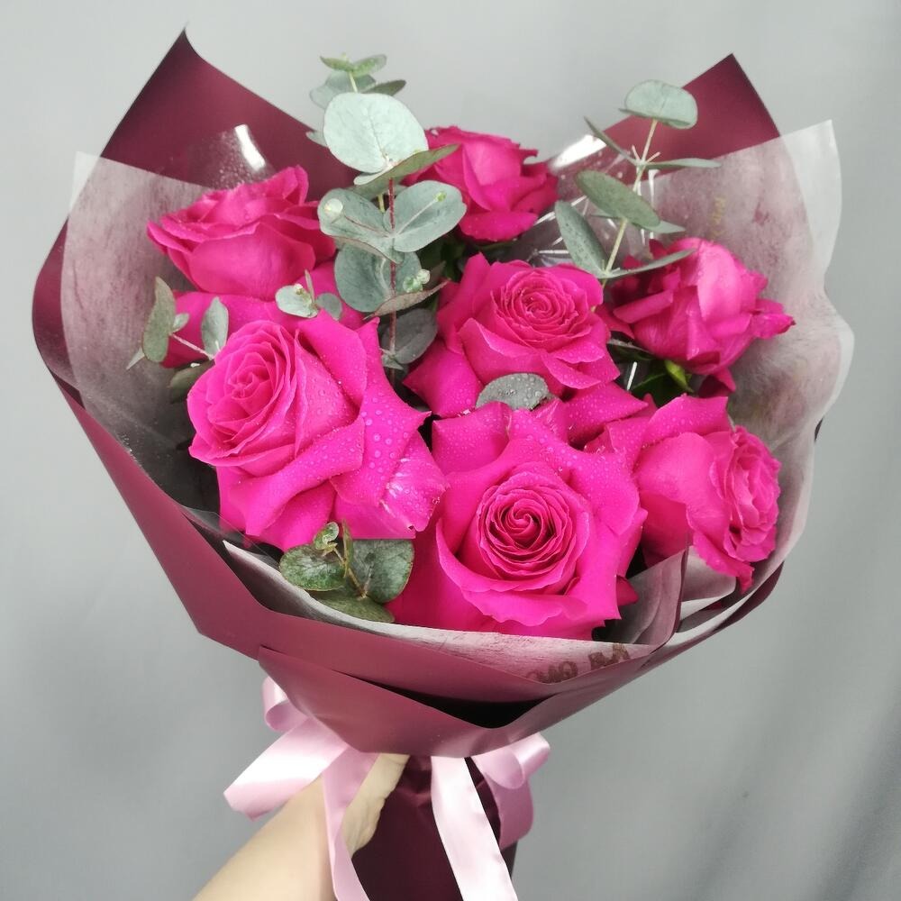 Bouquet of 7 French roses with eucalyptus
