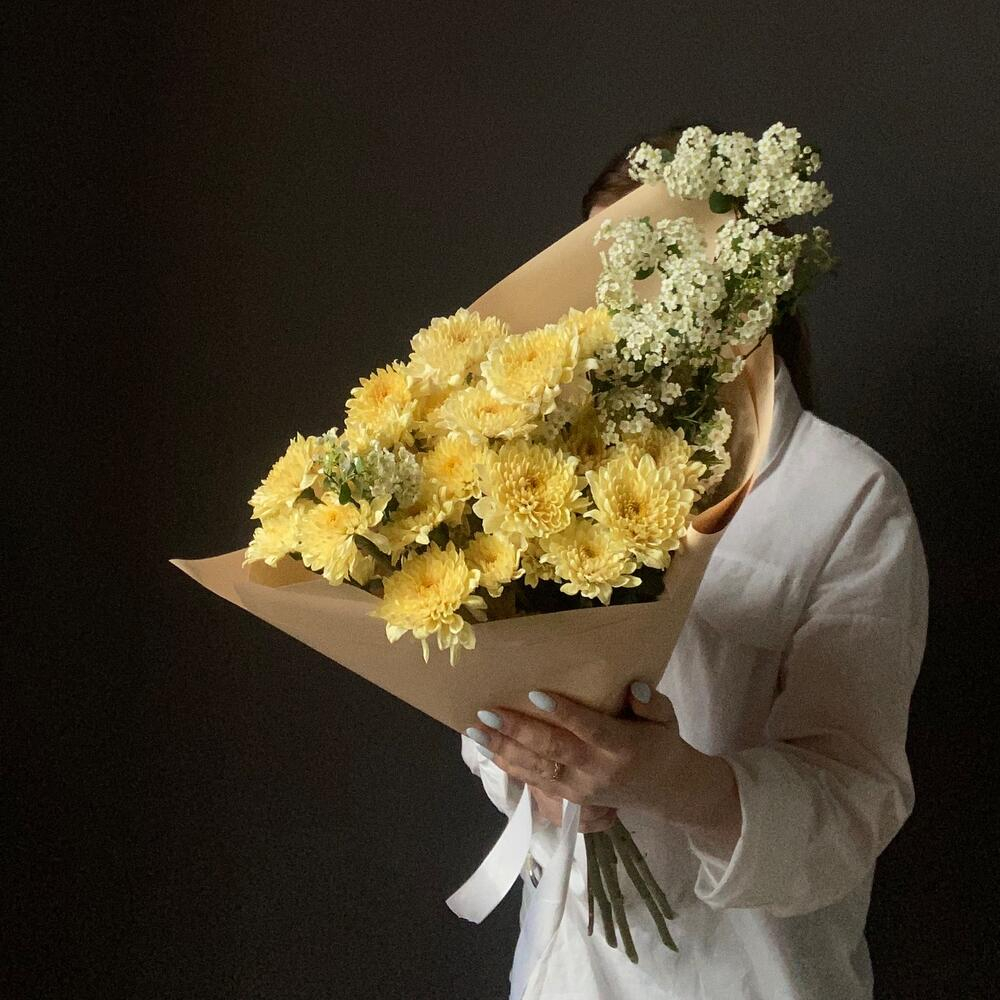 Bouquet of bush chrysanthemum and spirea