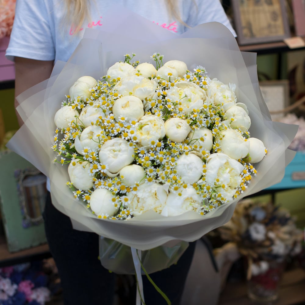 Bouquet of peonies with daisies "Juno"