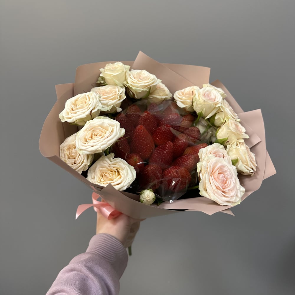 Bouquet of strawberries and roses
