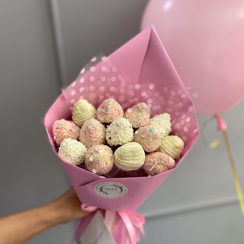 Bouquet of strawberries in white chocolate