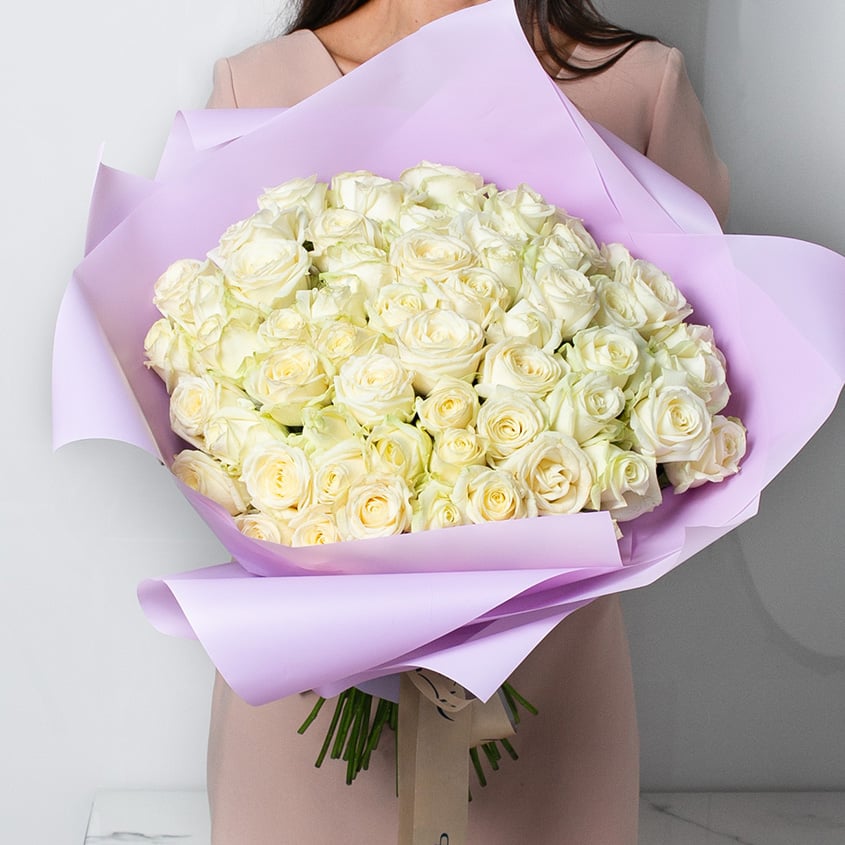 Bouquet of white roses 51 pcs.