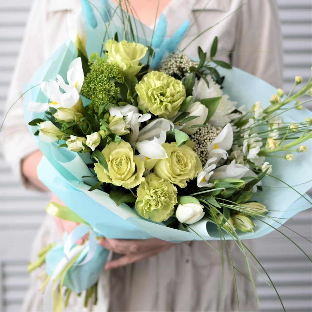 Bouquet with a rose in pistachio tones