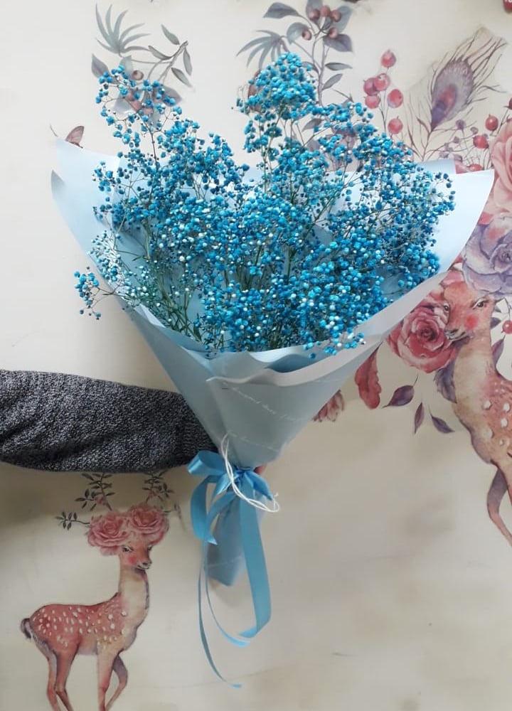 Bouquet with blue gypsophila