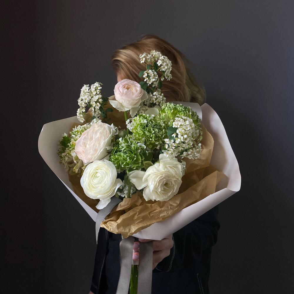 Bouquet with ranunculus, spirea