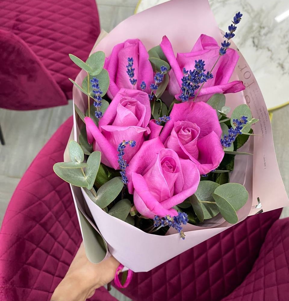 Bouquet with roses and lavender