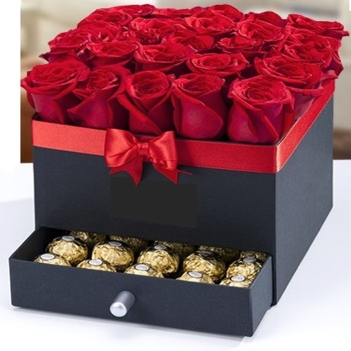 Flower box 'Box of 25 roses with a surprise drawer.'