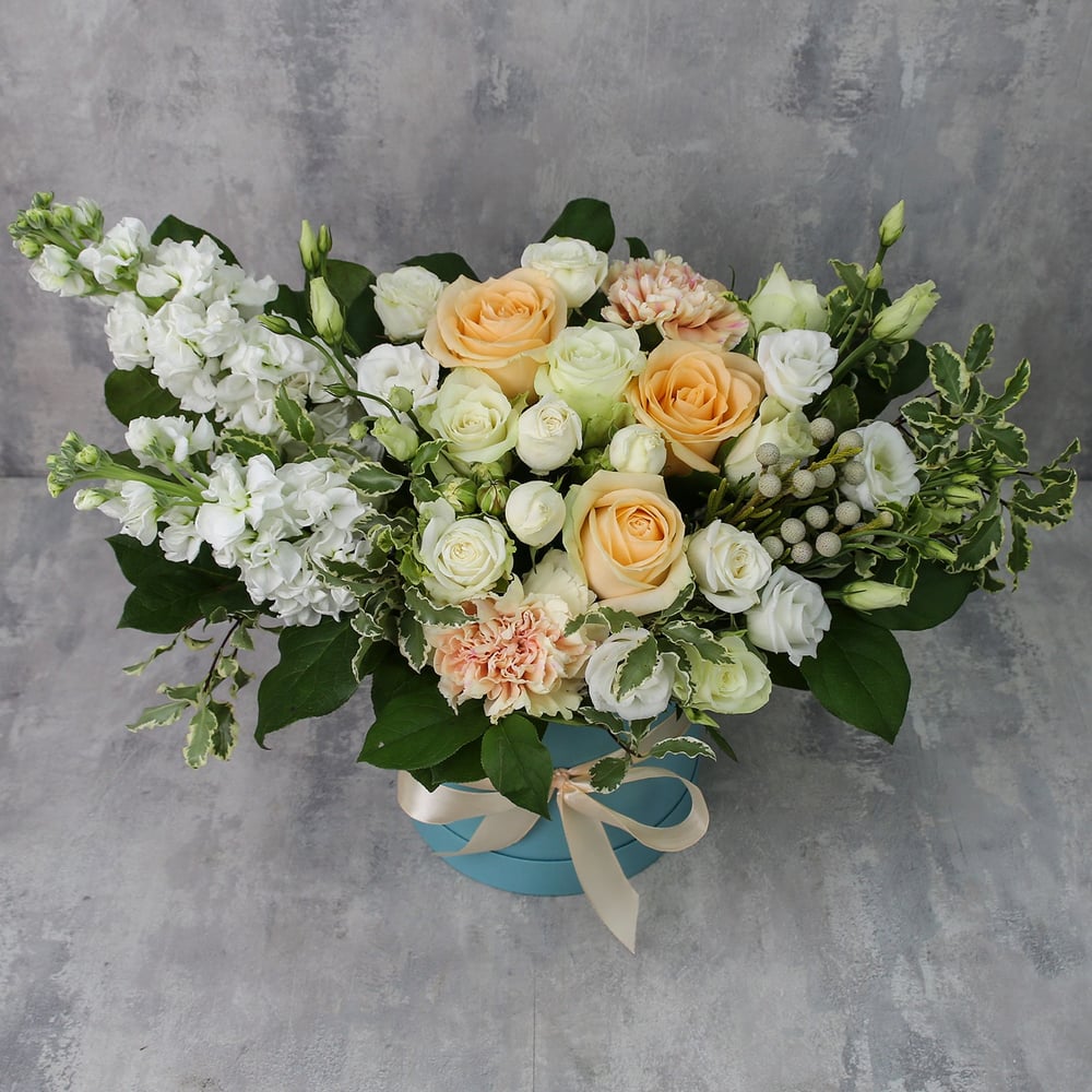 Hat box with flowers 'Box with flowers "Passionate kiss"'