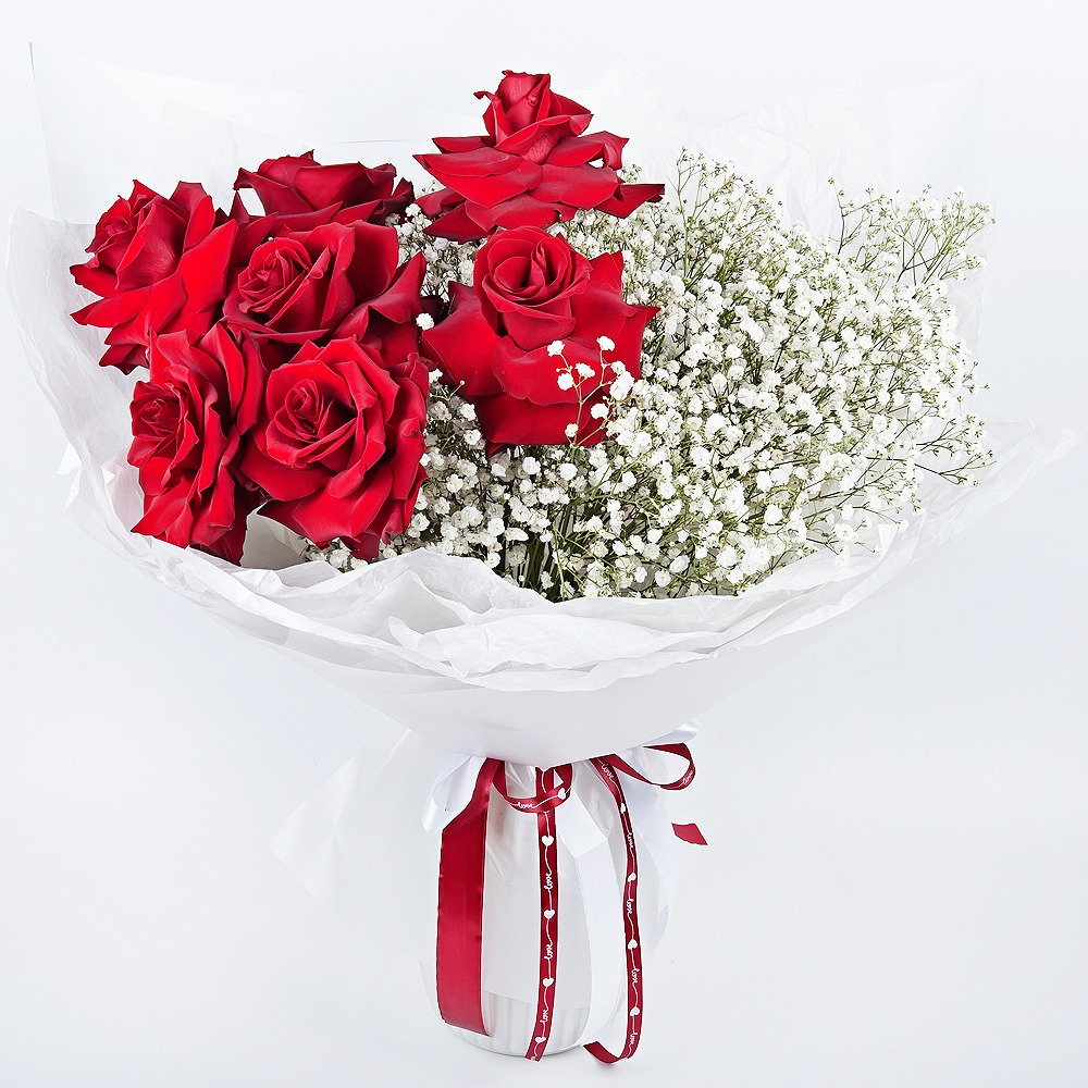 The "Vivid Feelings" bouquet is the perfect choice for those who want to express their emotions and give unforgettable impressions. This bouquet combines the red rose from Ecuador and the delicate gypsophila, which together create a unique atmosphere of passion and romance.