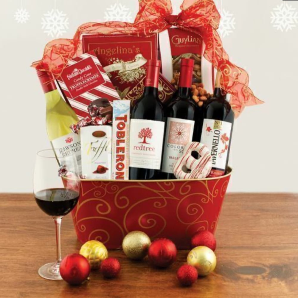 Christmas basket of wines and chocolates