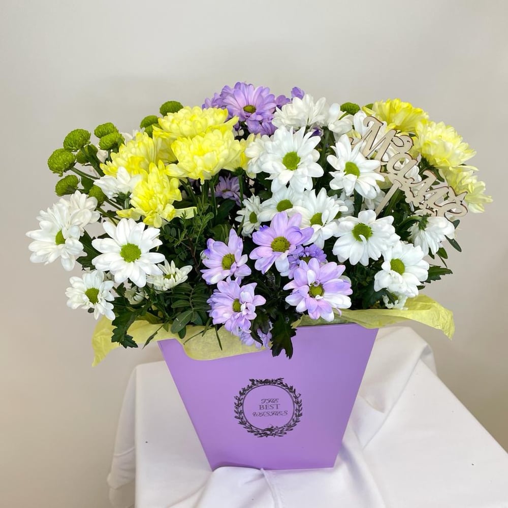 Flower box 'Chrysanthemums in a box in the form of a cube'