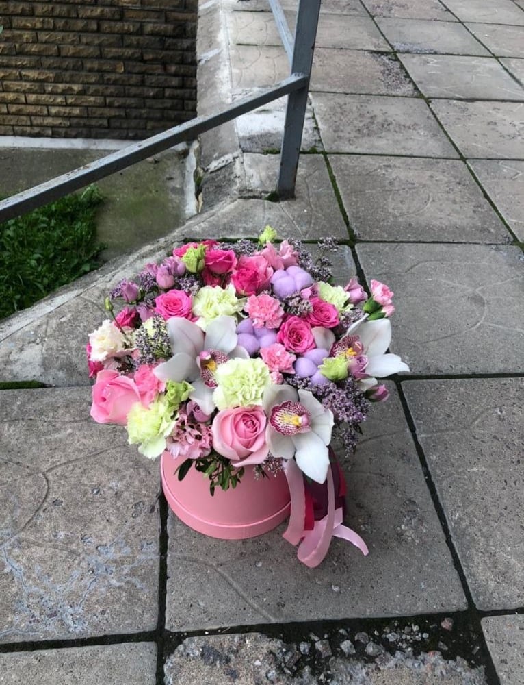Flower box 'Composition in a hat box'