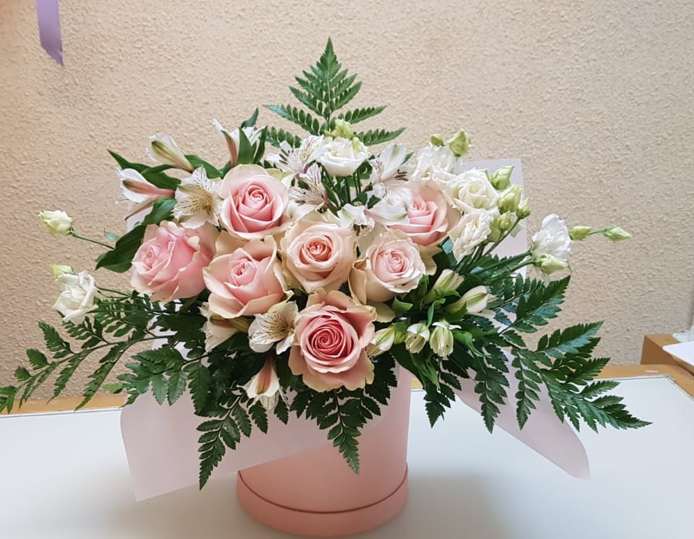 Hat box with flowers 'Composition "Marshmallow"'