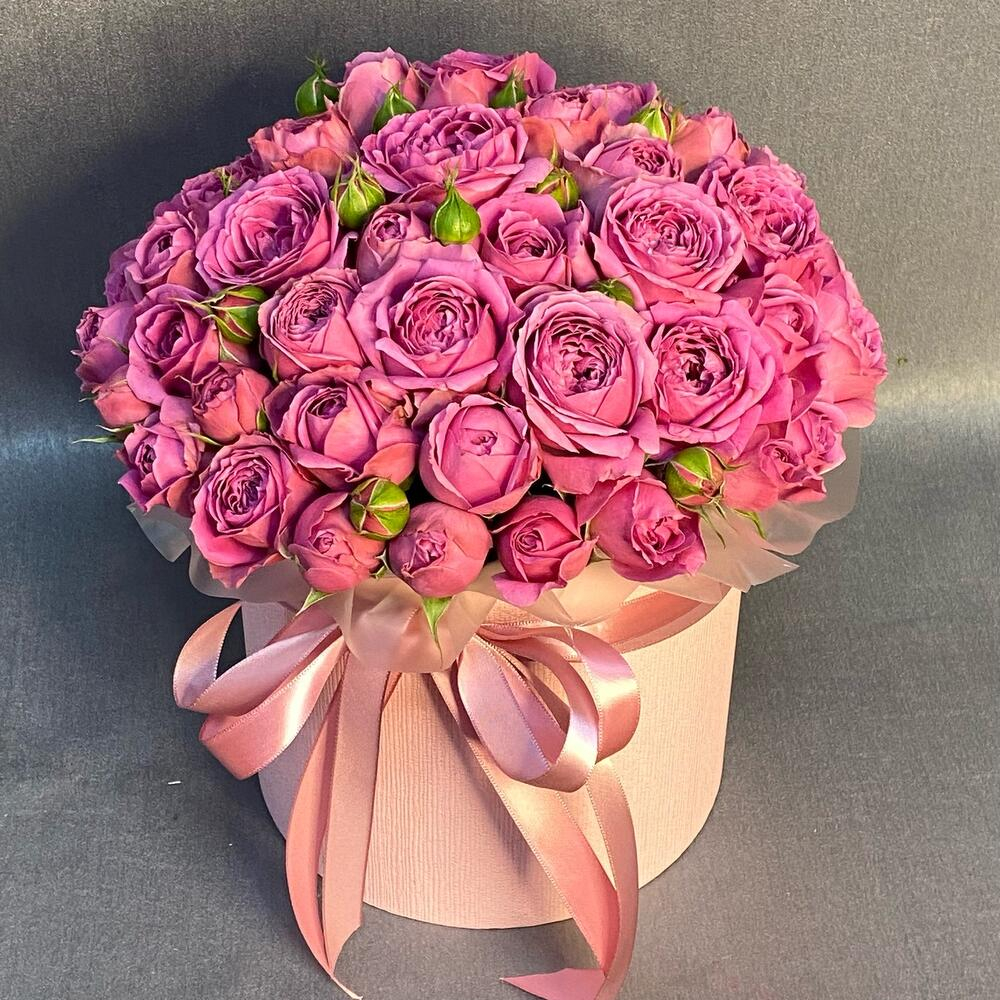 Hat box with flowers 'Composition Misty Bubbles'