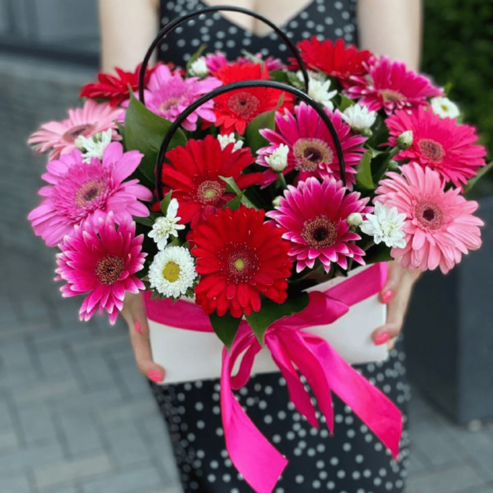 Flower box 'Composition of Gerberas, Chrysanthemums and Asters'