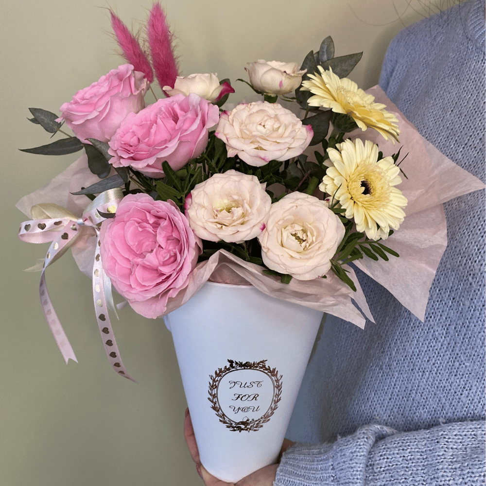 Flower box 'Composition of Germini and Roses'