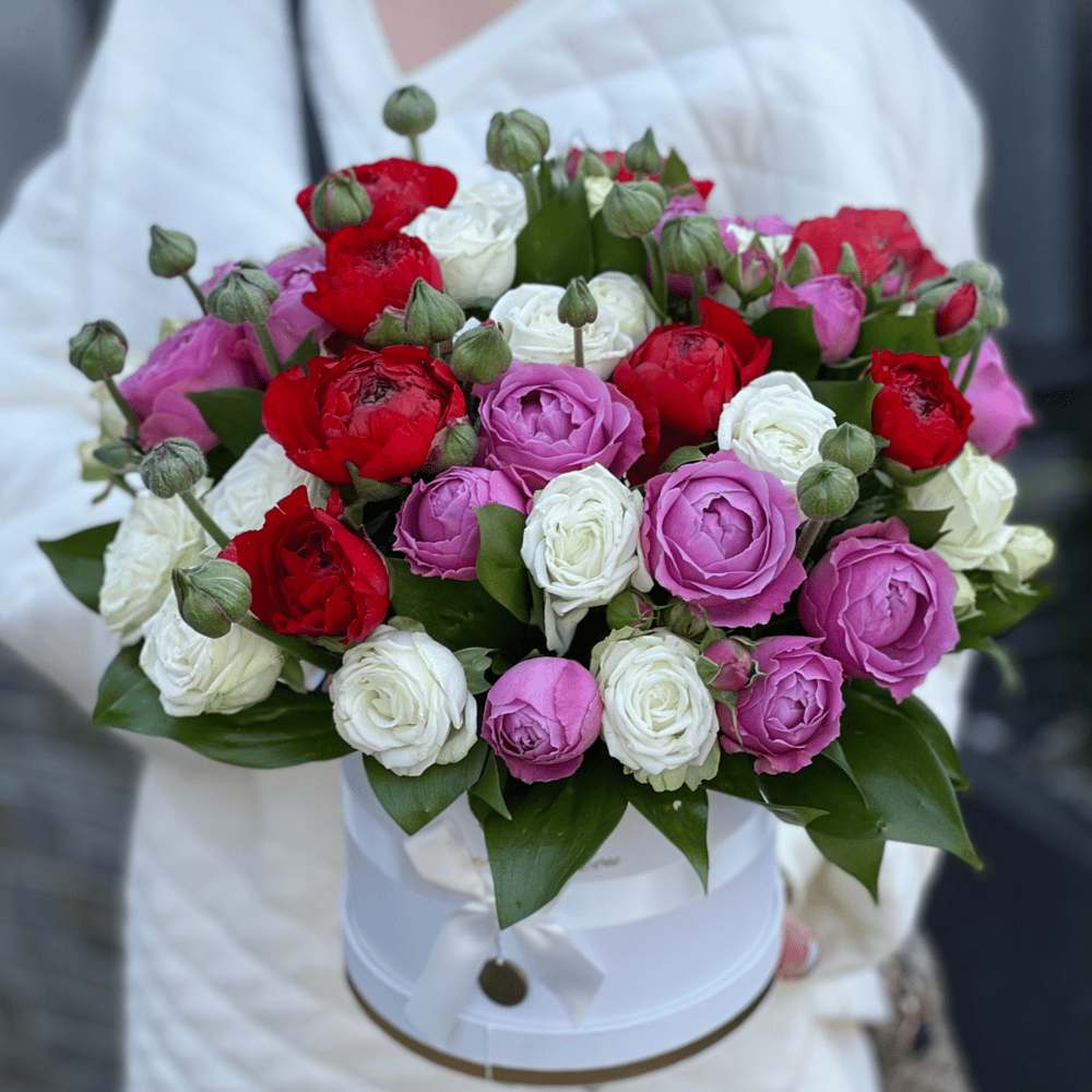 Flower box 'Composition of Ranunculus and Roses'