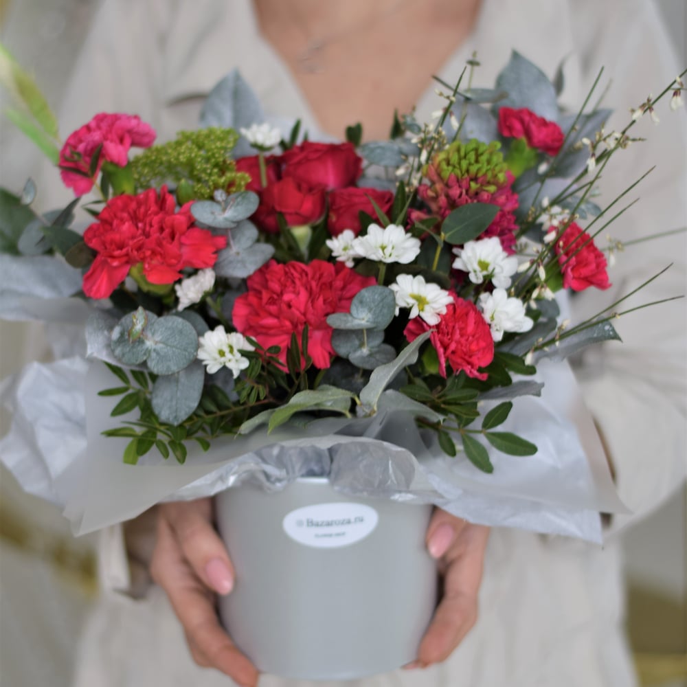 Hat box with flowers 'Congratulations'