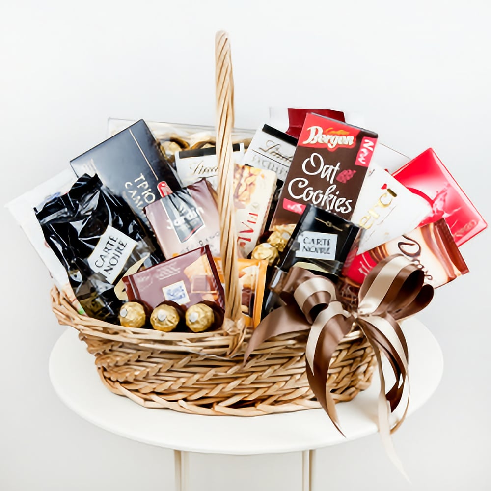 This is our most substantial, most luxurious, and perhaps most masculine coffee basket. The rugged black coffee, an assortment of dark and classic chocolates, and truffles with amaretto create an impressive set capable of impressing any man.