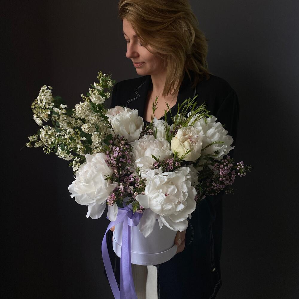 Hat box with flowers 'Delicate Flowers in a box'