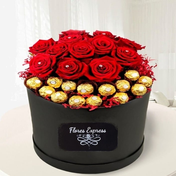 Flower box 'Diamond Roses & Chocolates Gift Box'