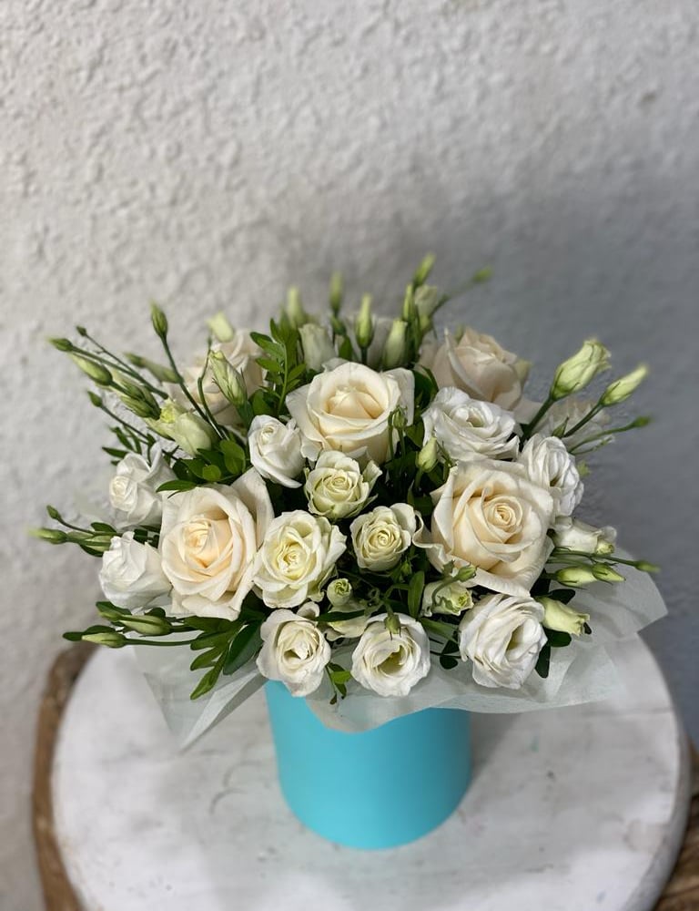 Hat box with flowers 'Ease'