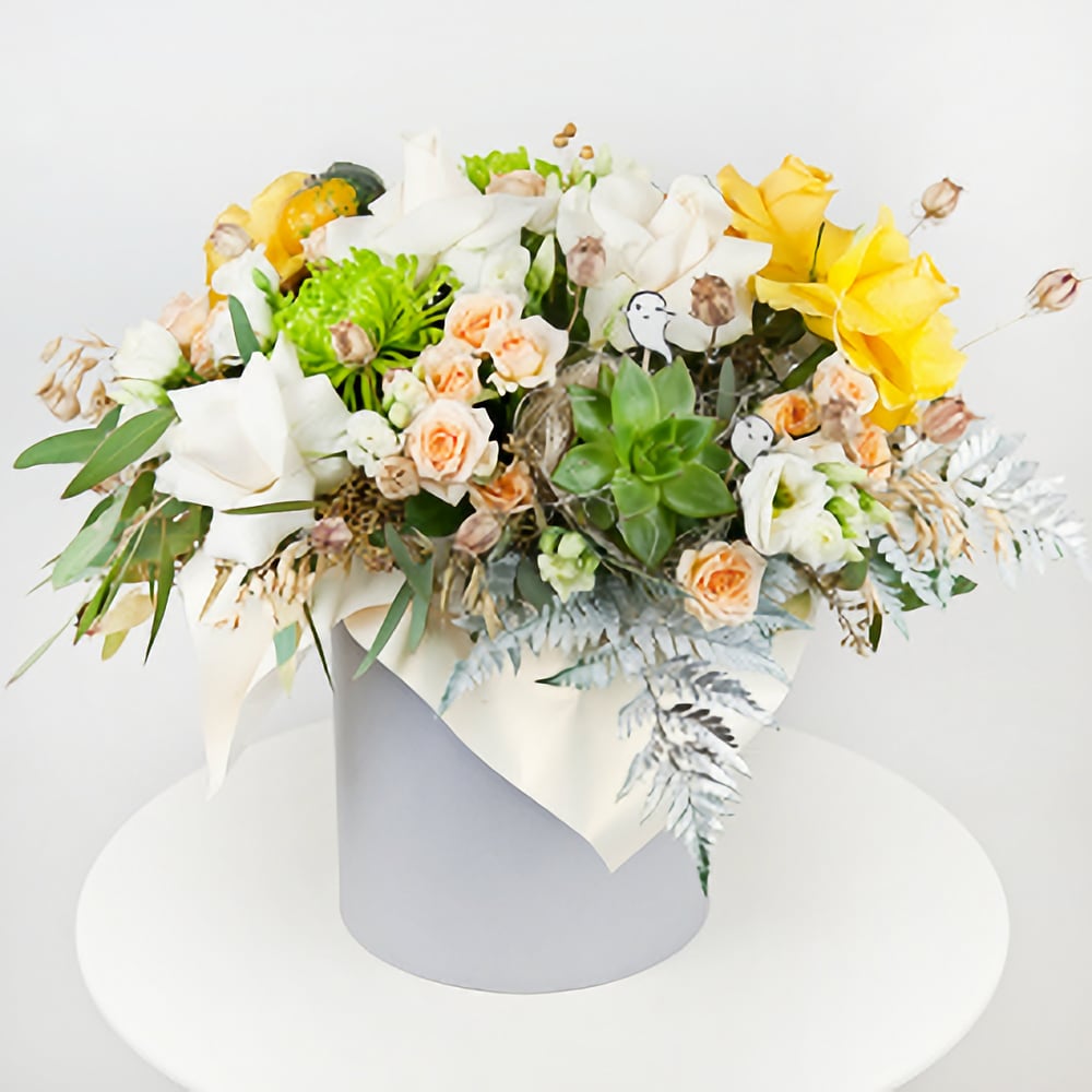 This flower arrangement is as rare, as a full eclipse. Its mysterious beauty captivates the eye and enchant anyone who will see it.