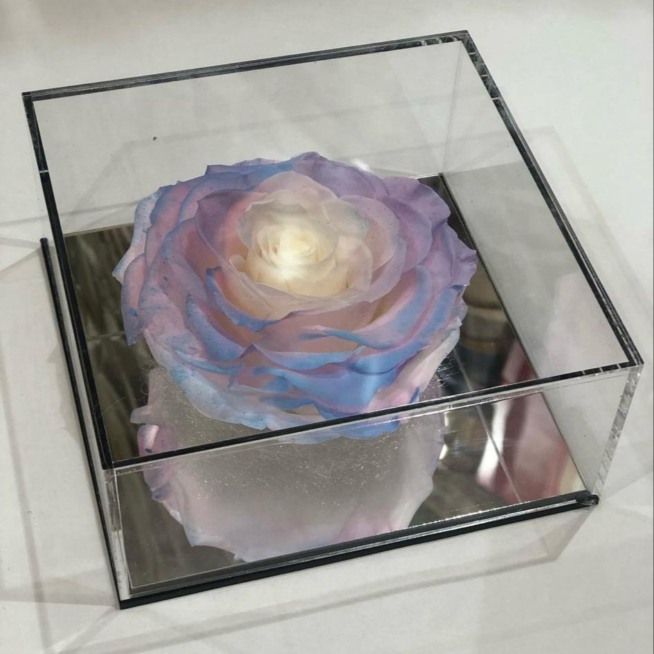 Colorful eternal rose in a clear box
