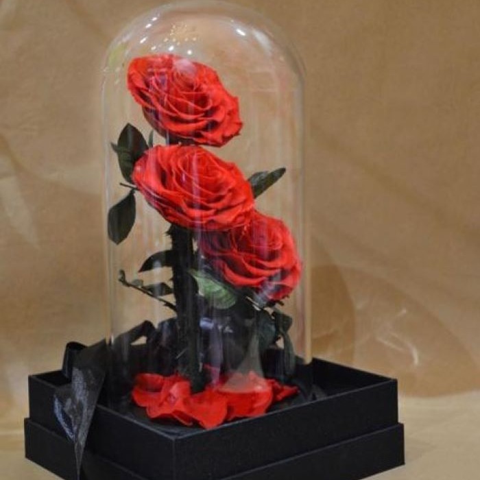 Everlasting roses encased in a glass dome