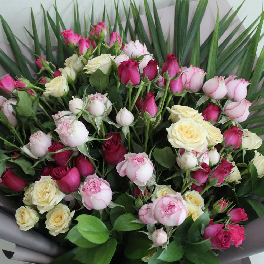 A chic bouquet of a mix of spray roses will impress with its volume and its aroma.