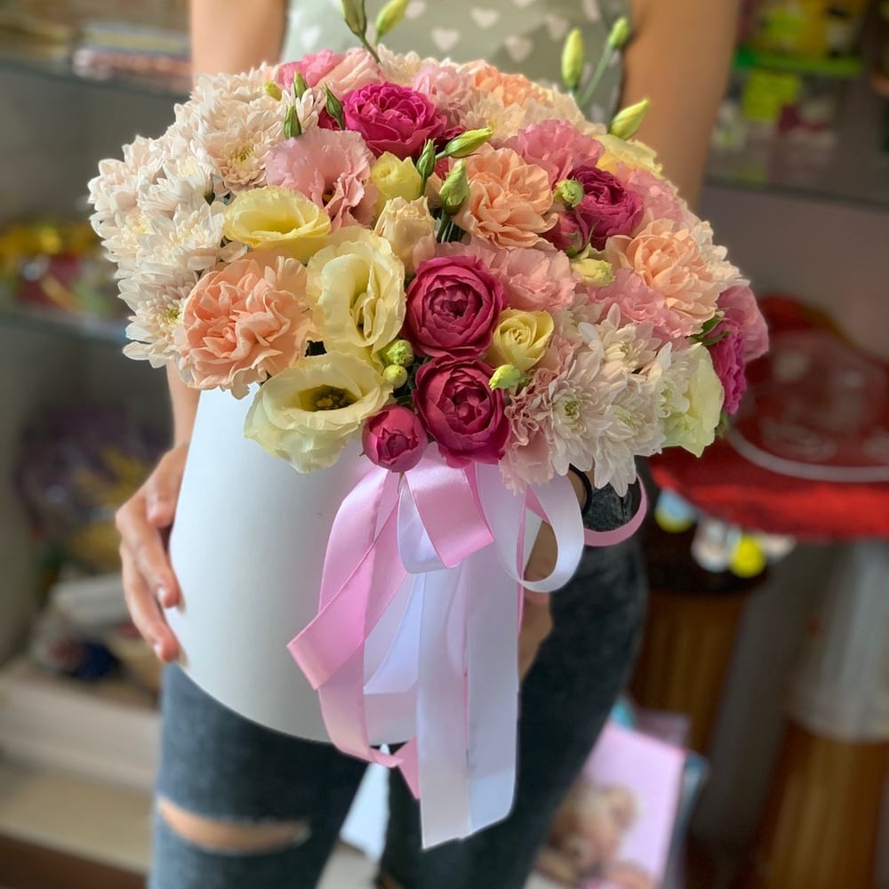 Hat box with flowers 'Flight of fantasy'