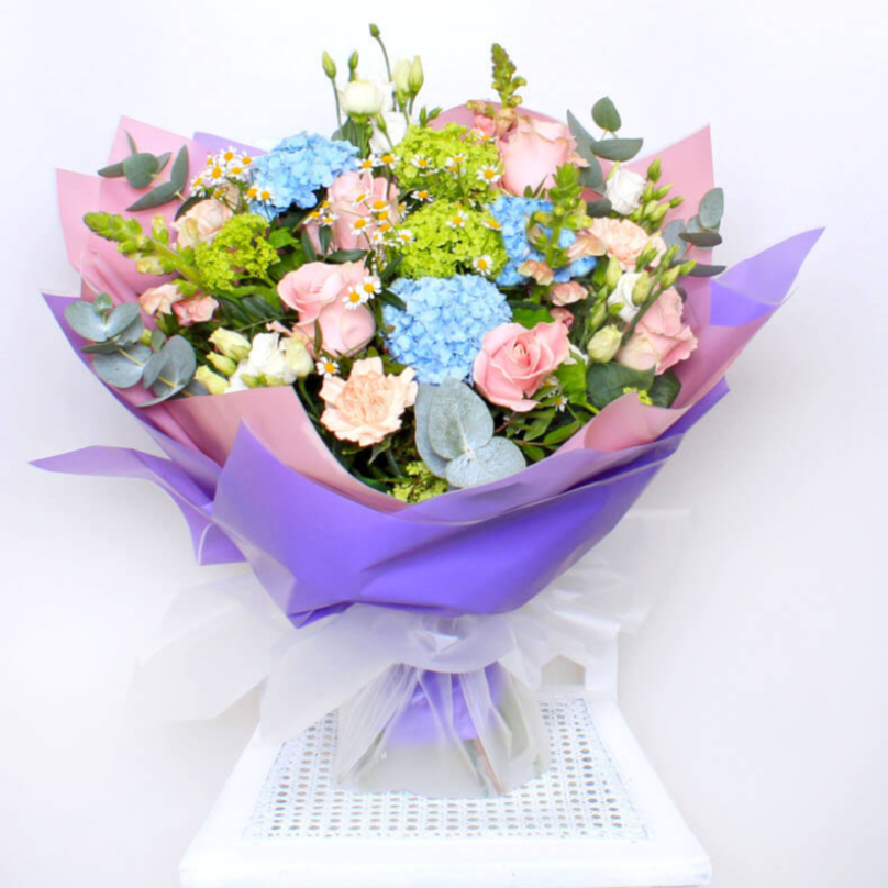 Each Pastel Florist Designed Bouquet is a unique combination of Chyrsanthemum and Roses designed by our artisanal local florists. A truly eye catching arrangement of ehtically sourced, sustainable hand cut flowers.
