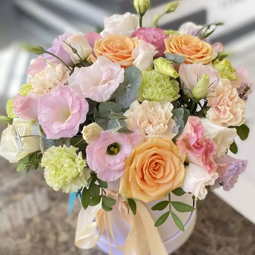 Hat box with flowers 'Flower Tale'
